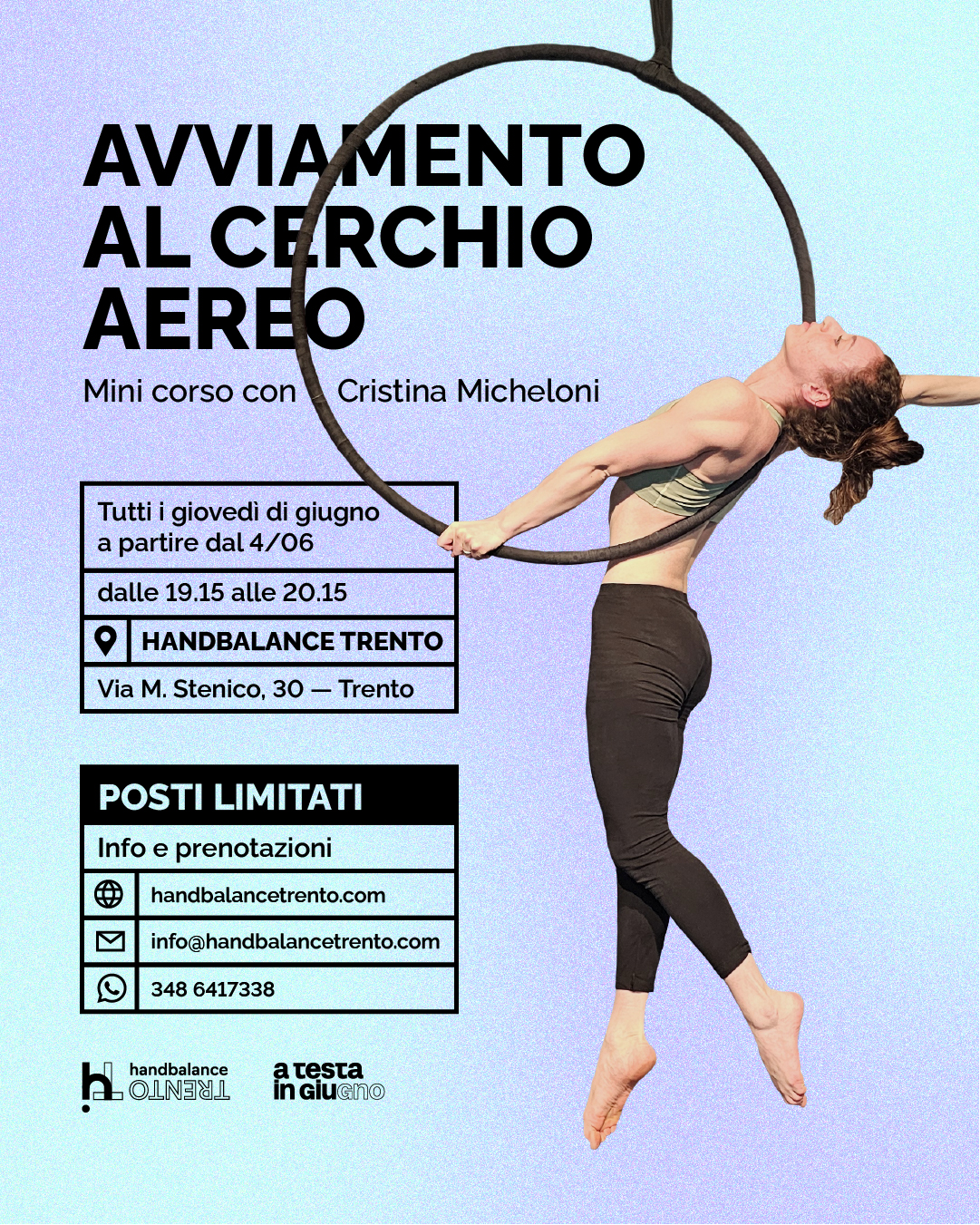 | Avviamento alla verticale Secondo turno 19:30-20:45 Handbalance Trento | Avviamento al cerchio aereo Avviamento alla giocoleria (in contemporanea) 19:15-20:15 Handbalance Trento |
